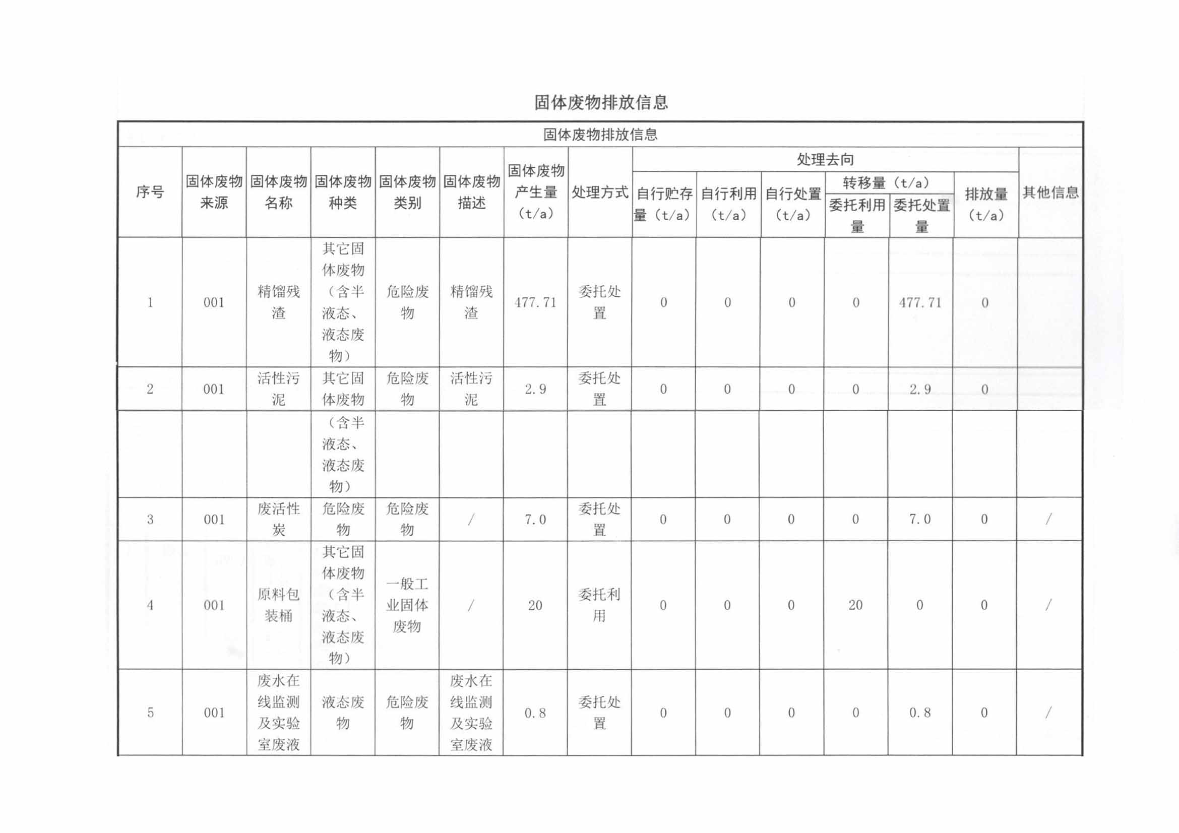 固體廢物排放信息